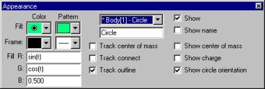 Color of bodies can be controlled with the extensive Interactive Physics formula