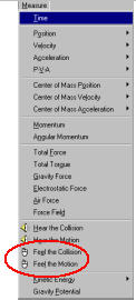 Feel the motion and/or collision of bodies through a force-feedback mouse or joystick.